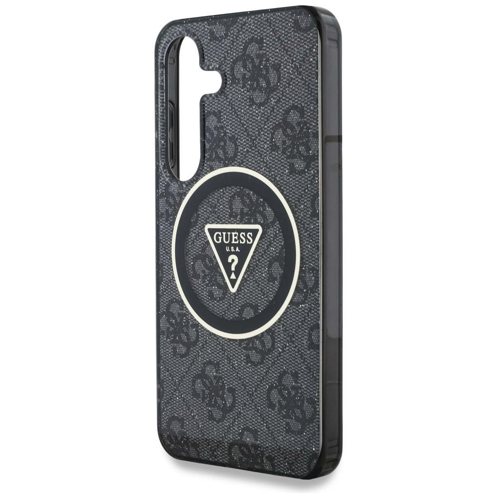 Guess® 4G Glitter Triangle Button MagSafe maskica za Samsung Galaxy S25 Plus Crna