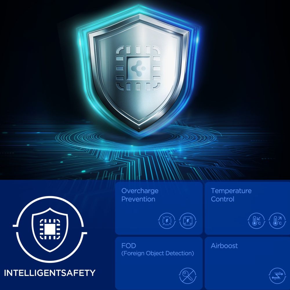• Spigen Essential EV25MFAQ je moderni, vrhunski držač za automobil koji kombinira učinkovito bežično punjenje s iznimnom stabilnošću i naprednim sustavom hlađenja