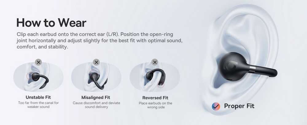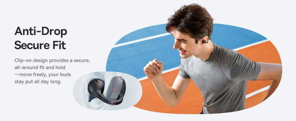 • S ergonomskom kopčom s tri luka i fleksibilnim TPU C-prstenom, otvorene slušalice Baseus Bass BC1 pružaju nježno, ali stabilno držanje koje se prilagođava različitim oblicima ušiju