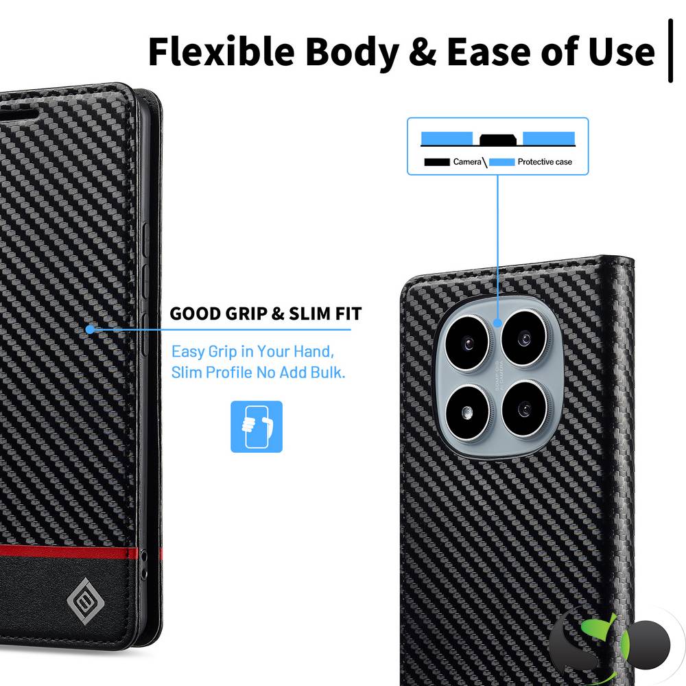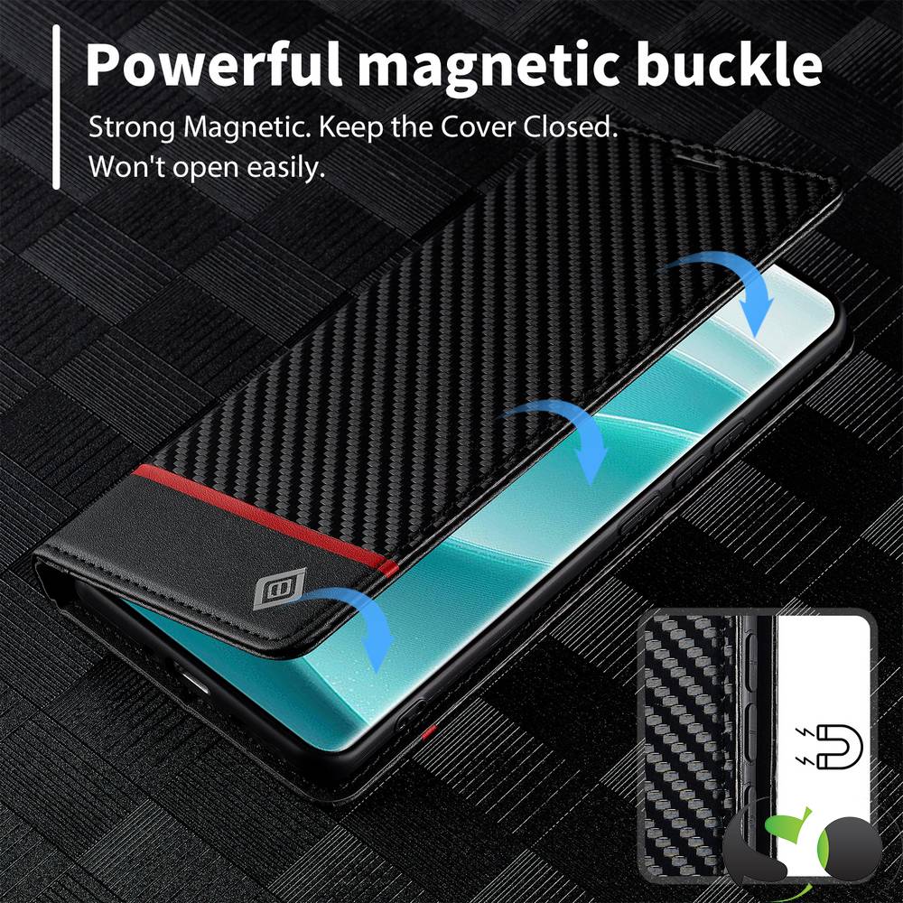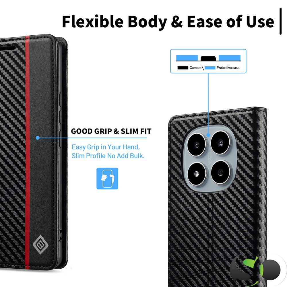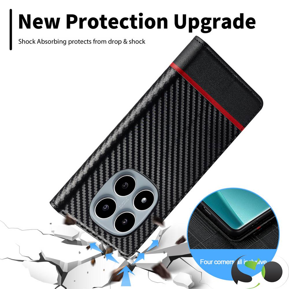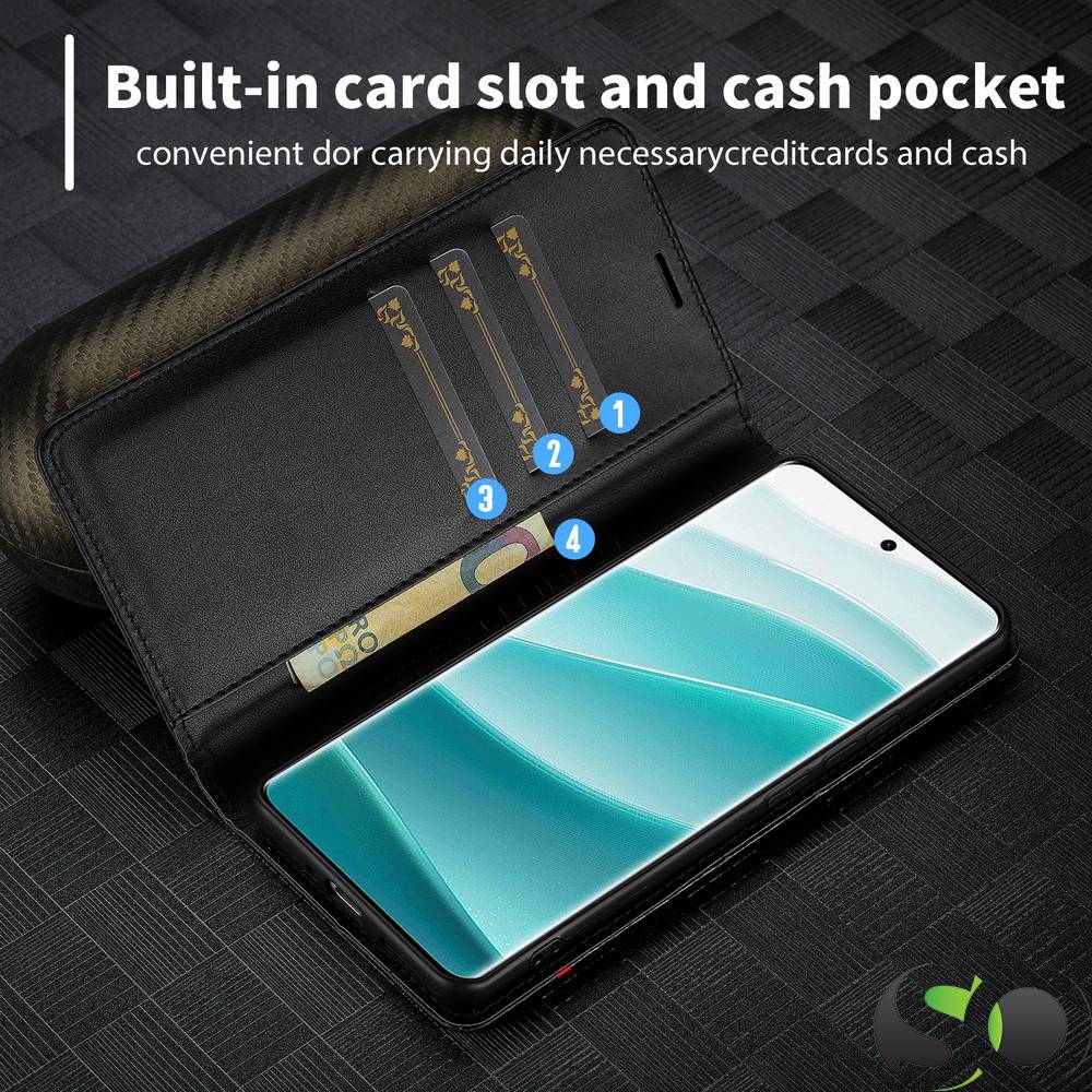 LC.Imeeke® Preklopna Karbonska futrola za Xiaomi Redmi Note 14 Pro 5G Crna