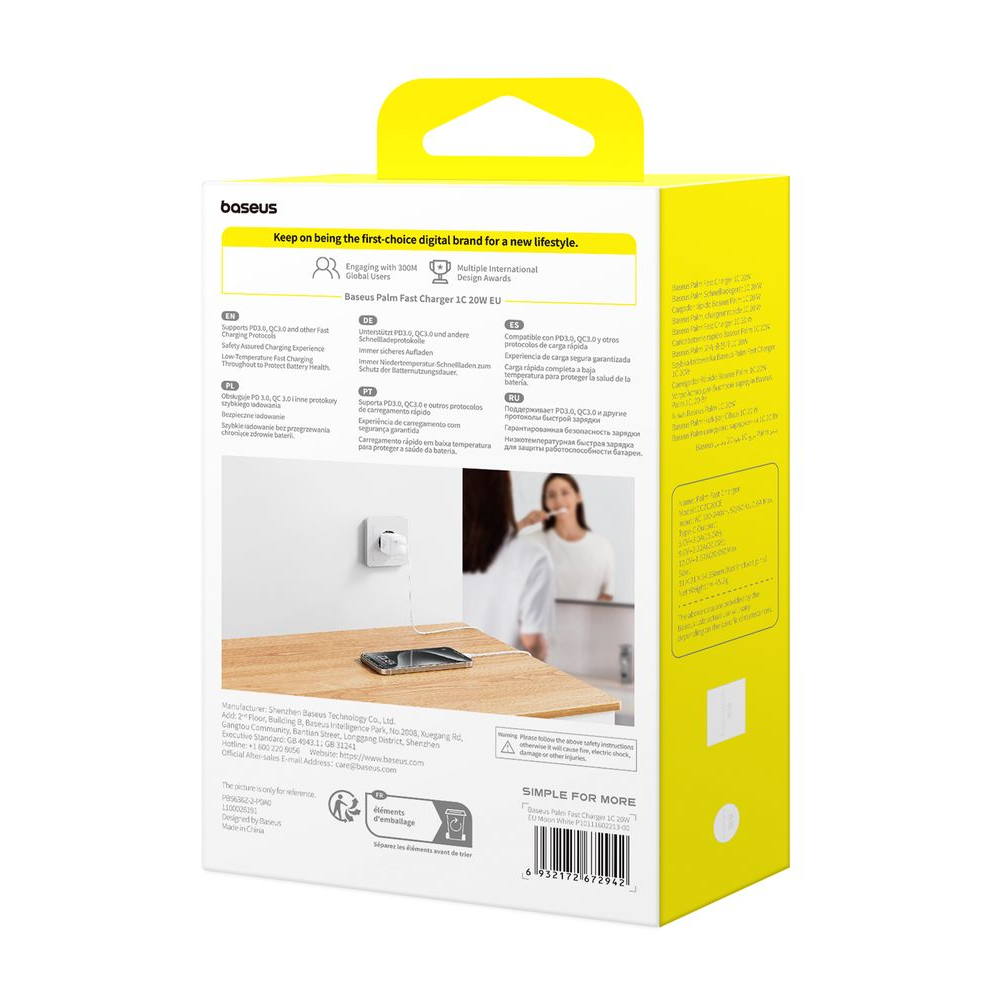 Baseus® 20W Brzi Zidni Punjač Type C QC 3.0 PD 3.0 Bijeli