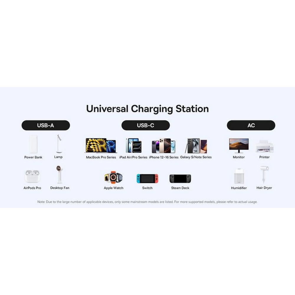 • Baseus EnerFill FA11 je kompaktna, snažna i moderna stanica za punjenje 6 u 1 koja nudi brzo punjenje do 67 W, univerzalnu povezanost i visoku razinu sigurnosti
