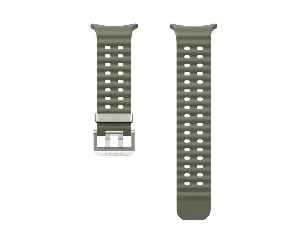 • Galaxy Watch Ultra Waterstrap ima dizajn bez ušica koji neprimjetno pristaje kućištu sata, osiguravajući elegantan izgled i udobno pristajanje tijekom posebno intenzivnih aktivnosti. Promjena i prilagodba remena je jednostavna s jednim klikom gumba na tijelu sata, eliminirajući sve komplicirane korake