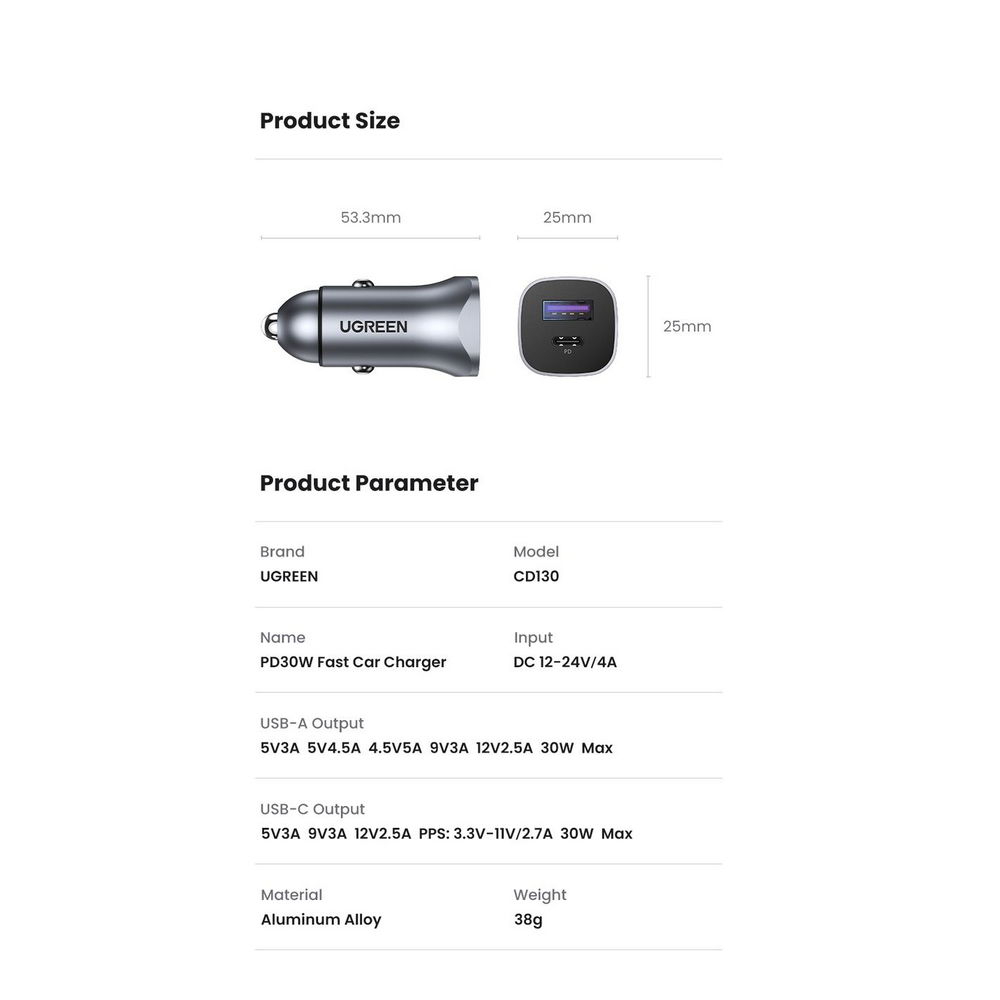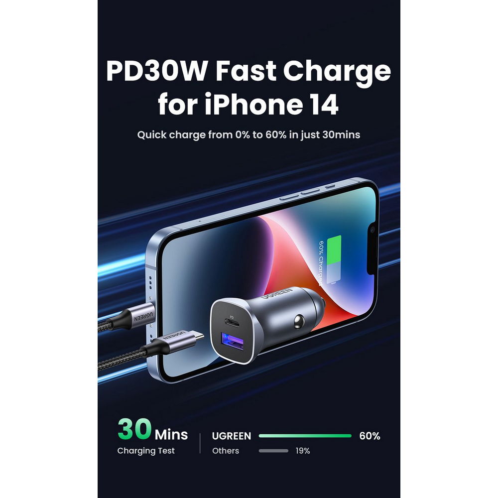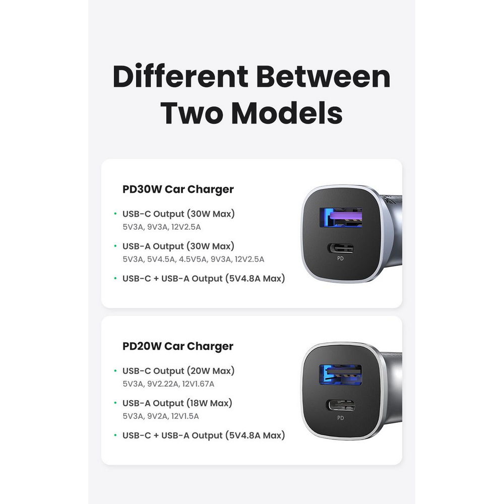 Ugreen® 40858 30W Brzi Auto Punjač USB + Type C