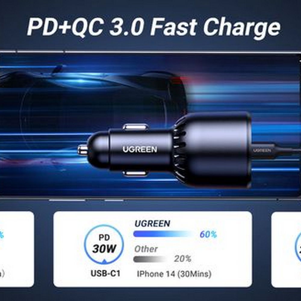 Ugreen® 55511 130W Brzi Auto Punjač USB +  2 x Type C + Type C to Type C Kabel