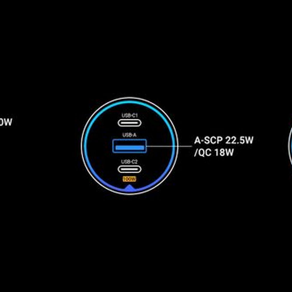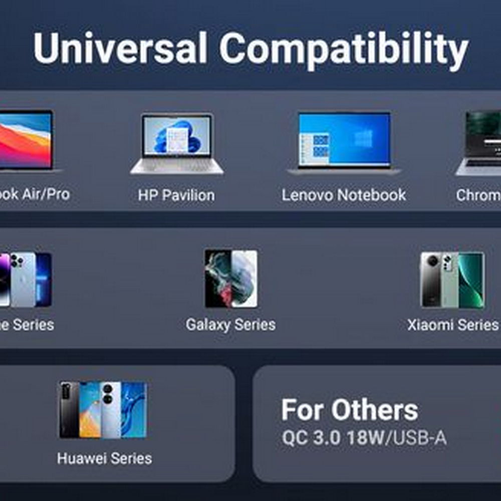 • Opremljen sa tri priključka – USB i 2 x Type C – podržava tehnologije brzog punjenja Power Delivery (PD) i Quick Charge 3.0 (QC3.0), što omogućuje trenutno nadopunjavanje energije u pametnim telefonima, tabletima i drugim uređajima
