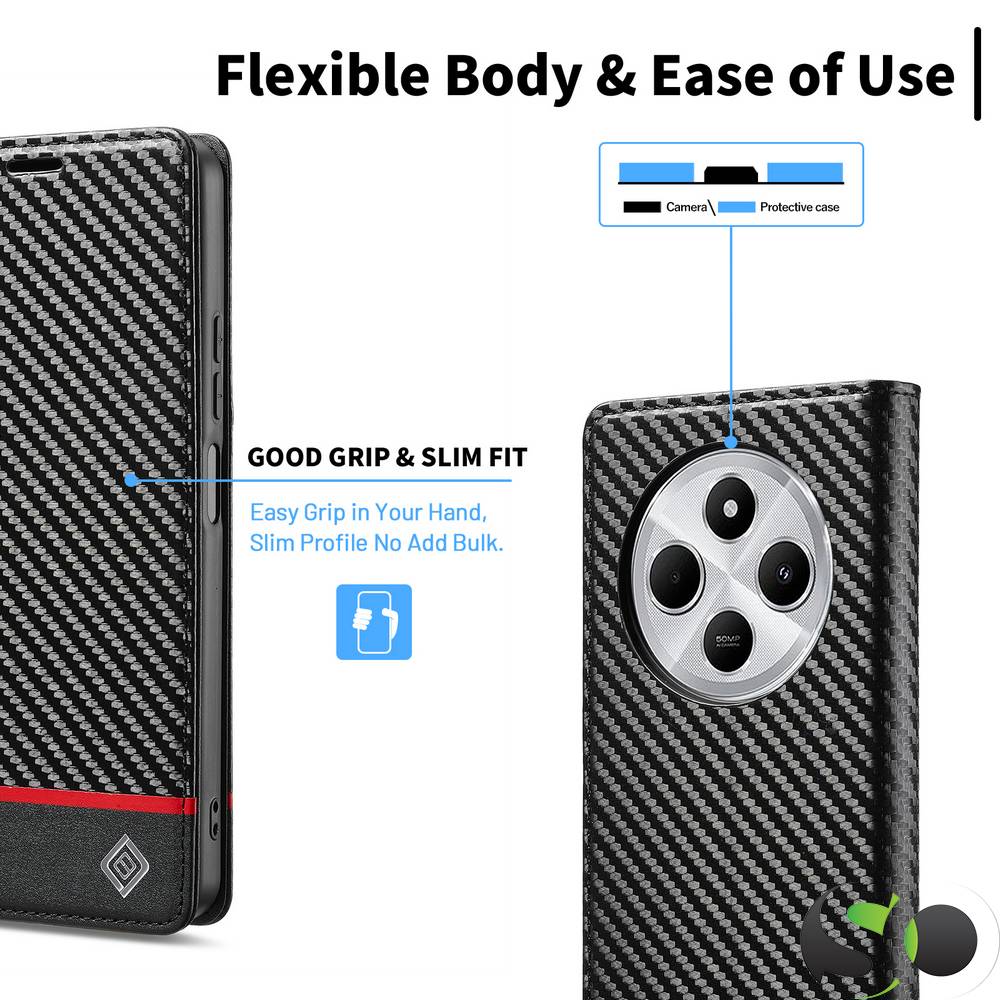 LC.Imeeke® Preklopna Karbonska futrola za Xiaomi Redmi 14C Crna